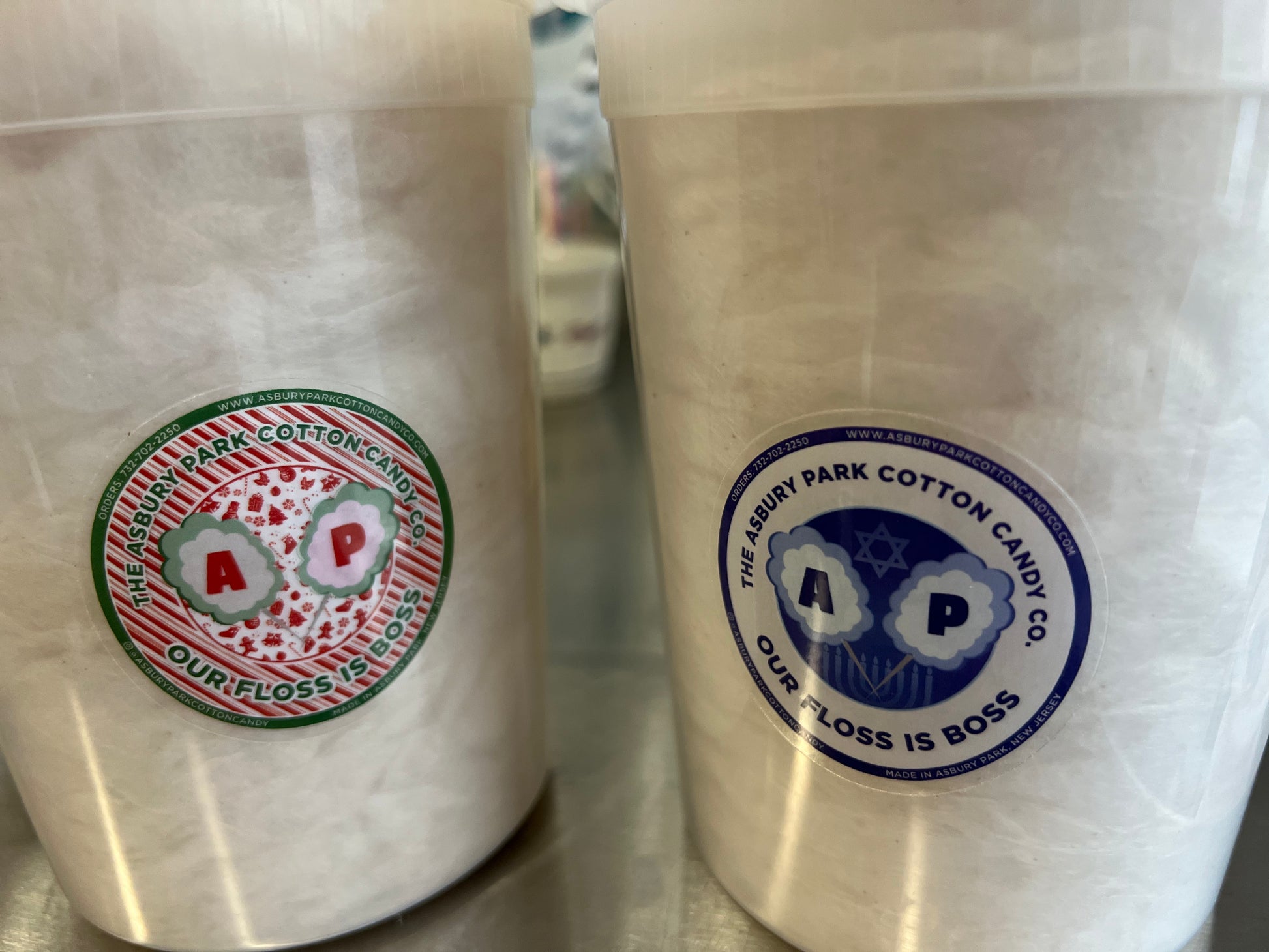 These are the old school, classic 32-oz deli containers stuffed with a boatload of cotton candy! Seriously, we manage to get about 10 cones in there.